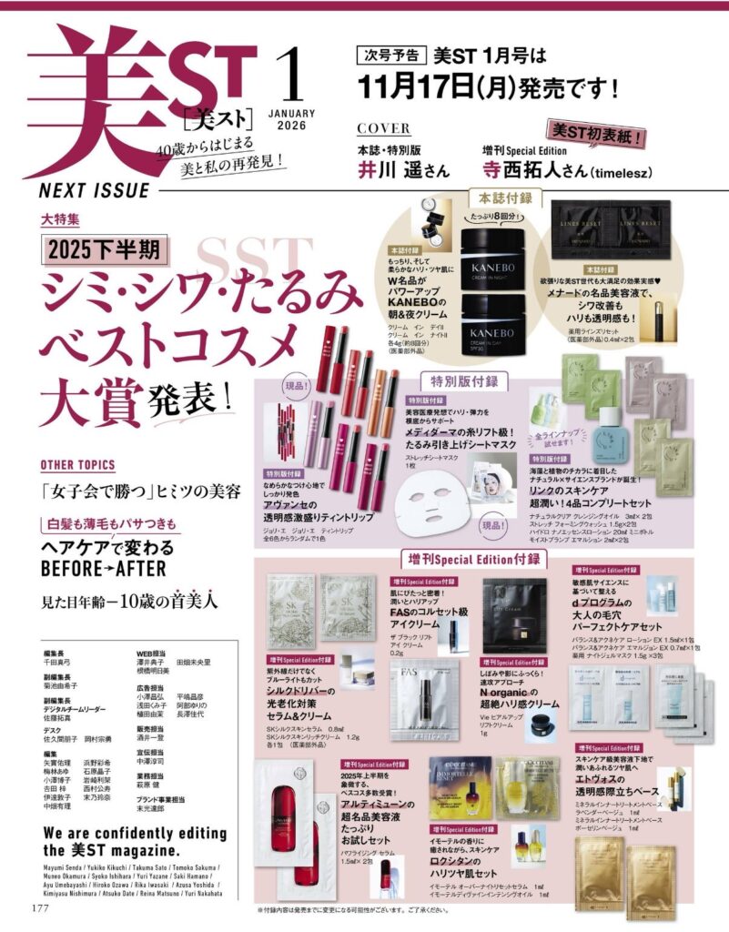今号の目玉特集は「2025年下半期 シミ・シワ・たるみベストコスメ大賞」。