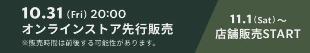 - 店舗販売:11月1日(土)OPEN時~(店舗によって時間異なる)